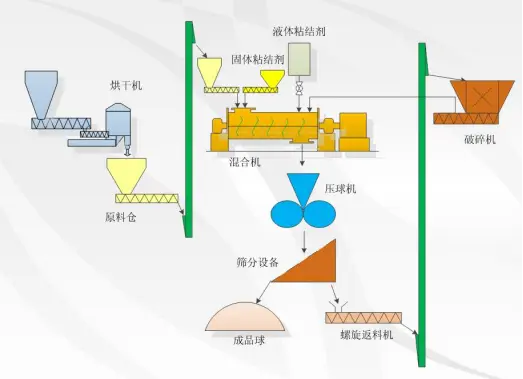 The key process requirement for briquetting equipment is "continuous quantitative feeding." Therefore, the process usually requires continuous batching, mixing, and subsequent drying (details of the batching and mixing processes can be found in the brochure).